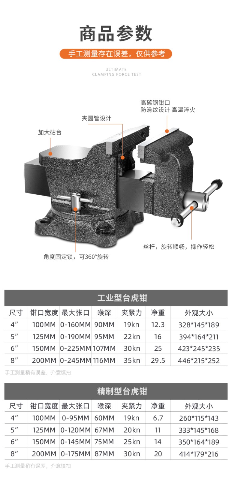 艾逊订货号:D1042147 原始型号:绿林(GREENER)工业级精密台虎钳 重型台虎钳台钳子虎钳台夹万向多功能家用模型台虎桌钳小型工作台 8英寸工业型台钳-29.5KG 品牌:御舵 品牌所属地:中国