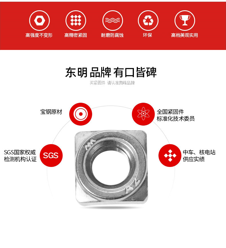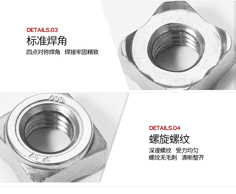 艾逊订货号:G1041649 原始型号:东明 DIN928四方焊接螺母,M10-1.5,强度A2-70 品牌:TONG/东明 品牌所属地:中国