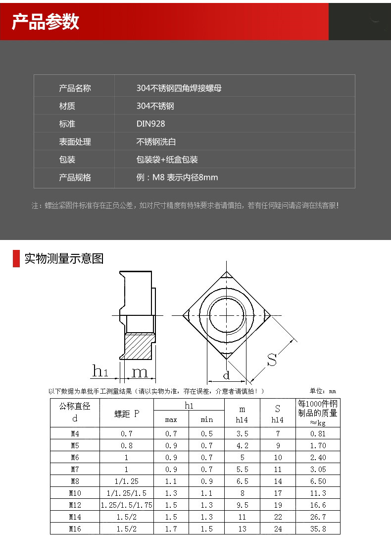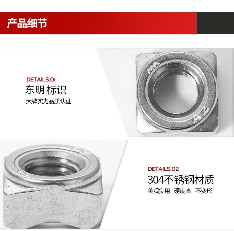 TONG/东明的四方焊接螺母东明DIN928四方焊接螺母,M10-1.5,不锈钢304,强度A2-70,50个/包
