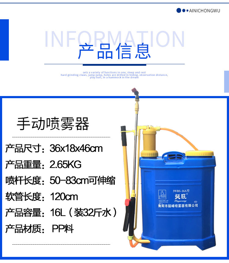 庄太太【16L手动喷雾器低配】手动喷雾器农用手压式打农药机背负式电动喷雾器 |