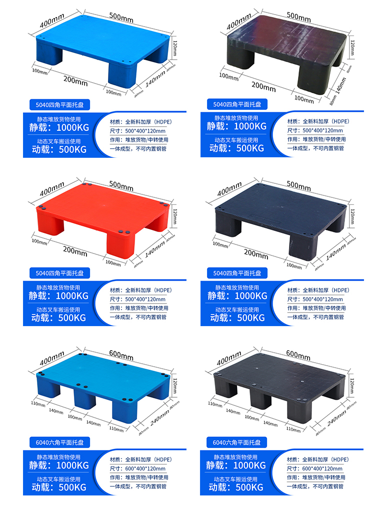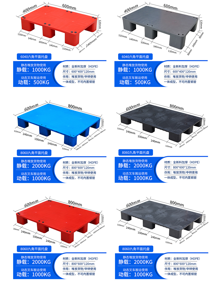 庄太太【灰六脚平板60*40*12cm】塑料托盘叉车超市平板九脚防潮垫板卡板地台堆仓库地垫货架红黑灰 |