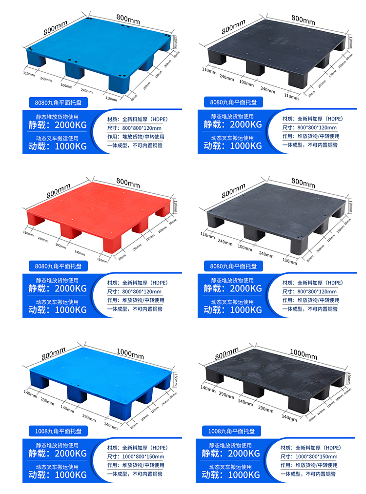 庄太太【灰九脚平板120*80*14cm】塑料托盘叉车超市平板九脚防潮垫板卡板地台堆仓库地垫货架红黑灰 |