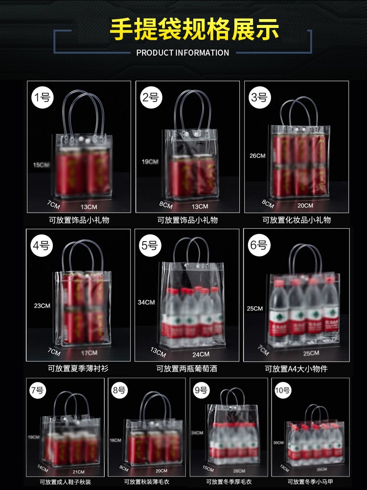 庄太太【定制专拍】PVC塑料透明手提袋礼品袋50个小礼物包装袋手拎袋子ZTT-9324B |