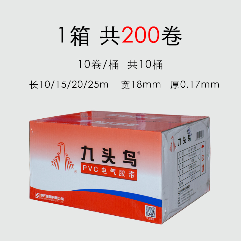 艾逊订货号:K1020020 原始型号:九头鸟电工电胶布加宽型大卷黑色白色 品牌:九头鸟 品牌所属地:中国