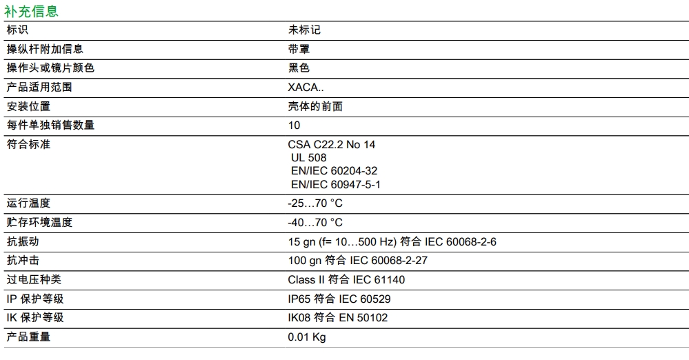 艾逊订货号:E1063308 原始型号:施耐德电气 XACA471 品牌:Schneider/施耐德 品牌所属地:中国
