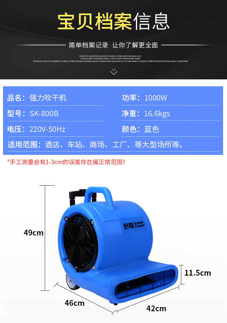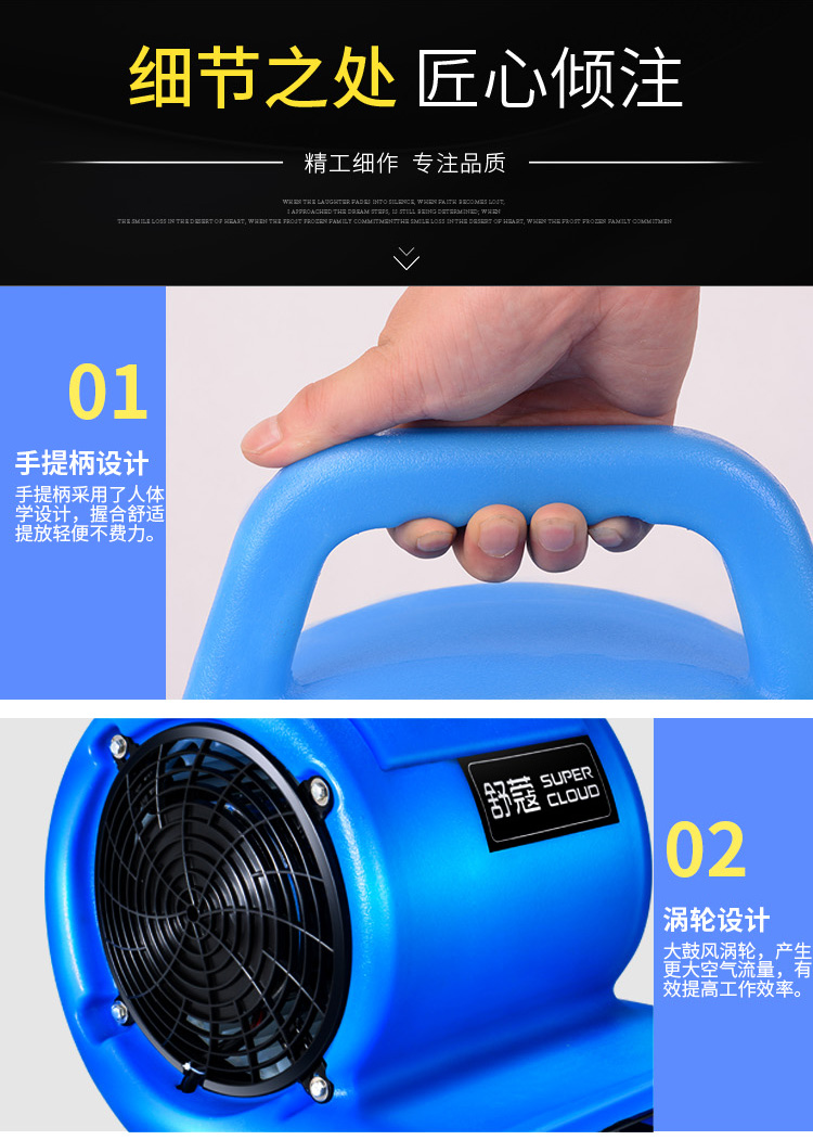 Supercloud/舒蔻的吹风机舒蔻(Supercloud)吹地机厕所地面吹干机吹风机大功率地板吹干吹风机工业商用地面地毯烘干机风干机鼓风机