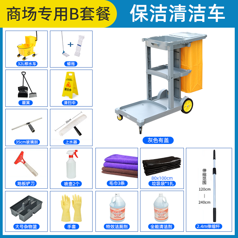 舒蔻(Supercloud)多功能清洁车商用保洁车保洁工具车布草车宾馆酒店客房服务车多层手推车垃圾车 商场B套餐 |