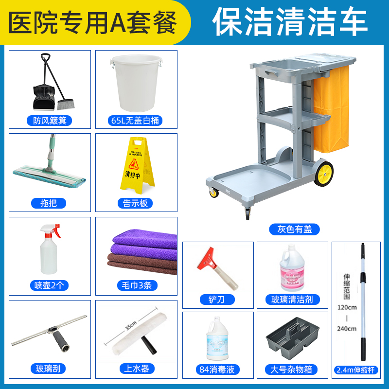 舒蔻(Supercloud)多功能清洁车商用保洁车保洁工具车布草车宾馆酒店客房服务车多层手推车垃圾车 医院A套餐 |