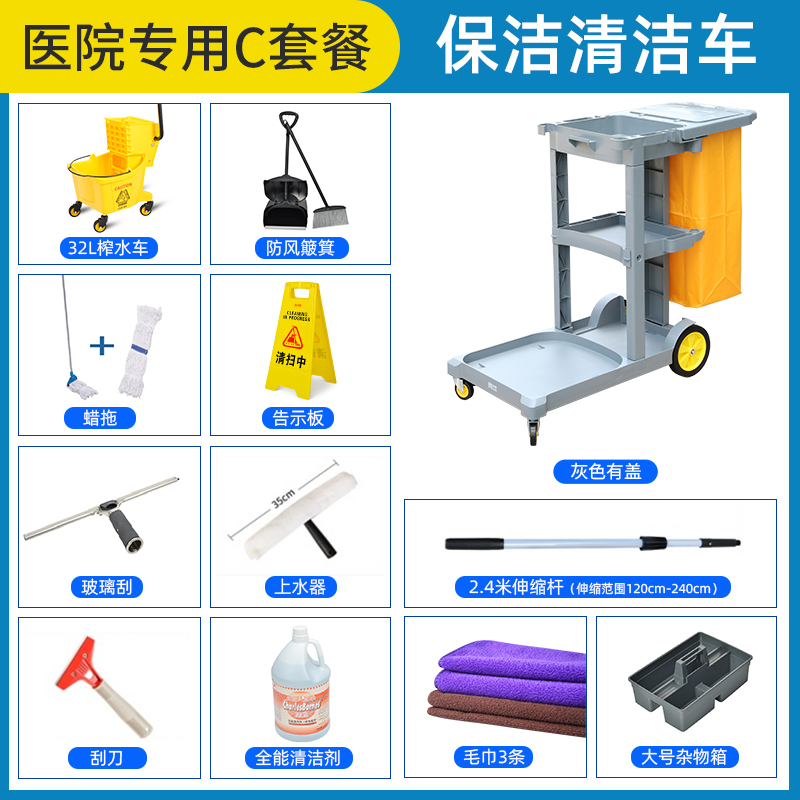 舒蔻(Supercloud)多功能清洁车商用保洁车保洁工具车布草车宾馆酒店客房服务车多层手推车垃圾车 医院C套餐 |