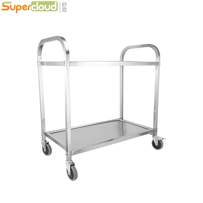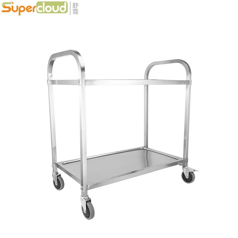 Supercloud不锈钢餐车手推车酒店送餐车多层收餐车推餐车厨房置物架储物架货架收纳车 二层餐车【中号/无磁】 |