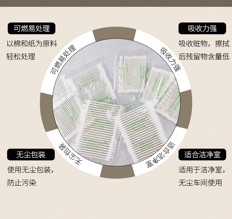 劳保佳 无尘净化棉签一次性工业擦拭棒圆头尖头纸杆双头精密表面处理 细长尖头 |