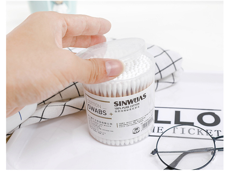 劳保佳 双头一次性棉签螺旋纹多色棉棒掏耳朵化妆卸妆棉签棒 白色 10盒装 200支/盒 |