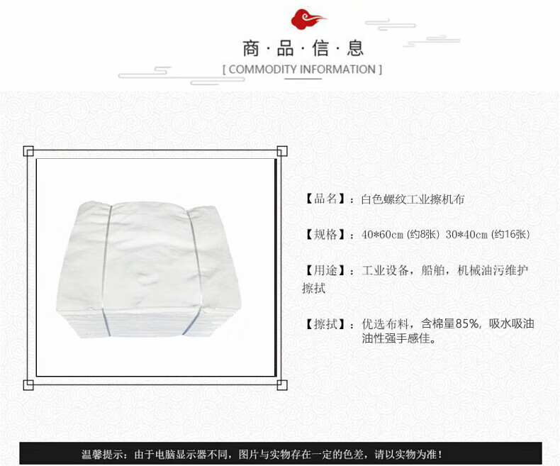 劳保佳 白色螺纹工业擦拭布 工业棉抹布 白色碎布棉擦机布 不掉毛吸水吸油工业纯棉抹布 30*40cm(25KG) |