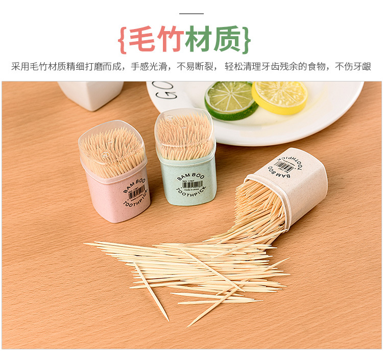 劳保佳的个人卫生清洁劳保佳盒装牙签创意方盒简装牙签一次性竹制双头酒店饭馆牙签混色250支/盒10盒装