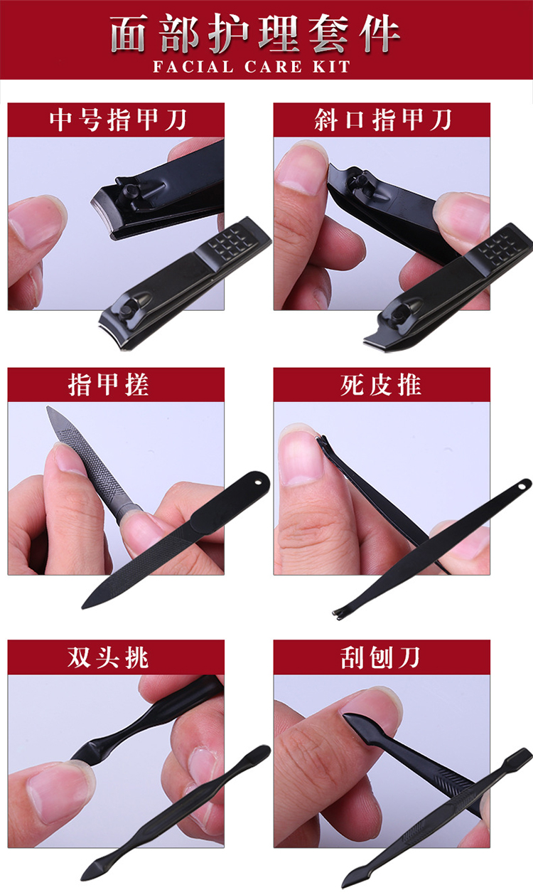 劳保佳 指甲刀套装 挖耳勺居家指甲剪修甲指甲钳套装 指甲锉修眉剪去死皮叉大号斜口甲沟炎专用 方格7件套 |