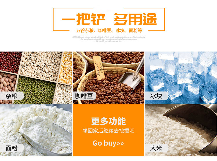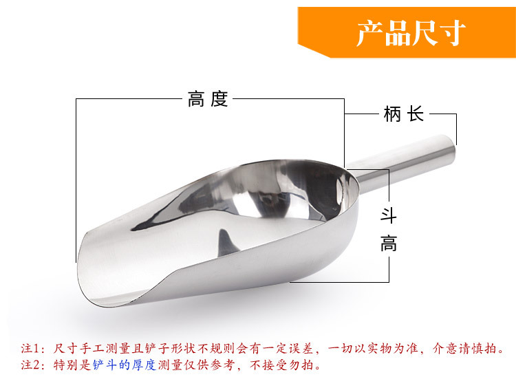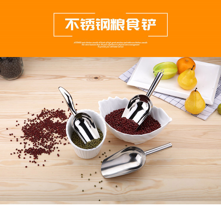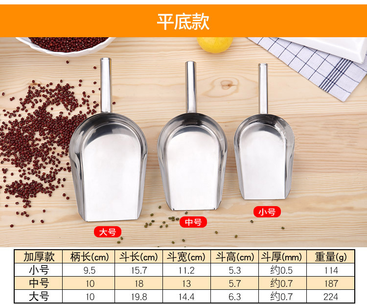 艾逊订货号:K1024099 原始型号:劳保佳 不锈钢色食物铲 食品铲米铲冰铲面粉铲糖铲干货铲子薯条爆米花铲 加厚多用铲 9号 品牌:劳保佳 品牌所属地:中国