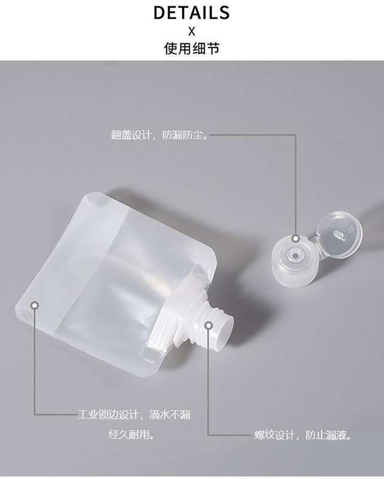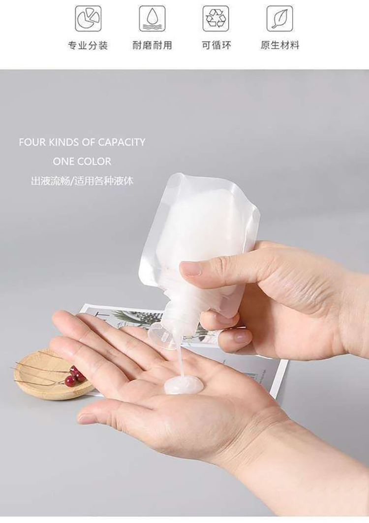 艾逊订货号:K1024263 原始型号:劳保佳 分装袋 旅行乳液分装袋 便携沐浴露洗发水瓶子洗面奶液体收纳袋分装袋 50ml 10个装 品牌:劳保佳 品牌所属地:中国
