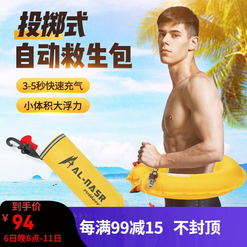 AL-NASR/阿尔纳斯 紧急救援自动充气救生圈专业大浮力车载救生腰带成人便携式钓鱼浮力救生衣自救 投掷式-自动款(黄色) |