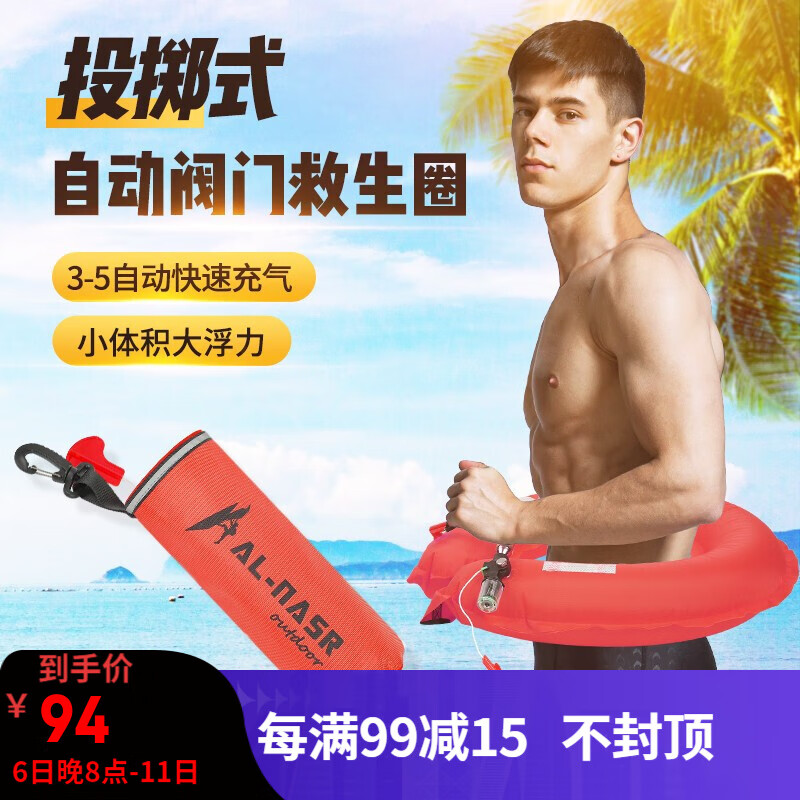 AL-NASR/阿尔纳斯 紧急救援自动充气救生圈专业大浮力车载救生腰带成人便携式钓鱼浮力救生衣自救 投掷式-自动款(红色) |