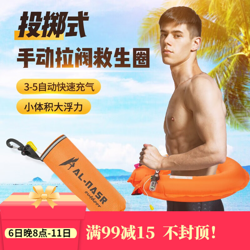 AL-NASR/阿尔纳斯 紧急救援自动充气救生圈专业大浮力车载救生腰带成人便携式钓鱼浮力救生衣自救 投掷式-手动款(桔色) |