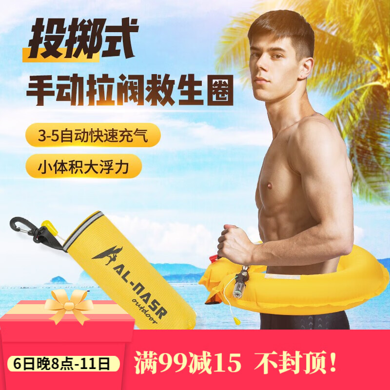 AL-NASR/阿尔纳斯 紧急救援自动充气救生圈专业大浮力车载救生腰带成人便携式钓鱼浮力救生衣自救 投掷式-手动款(黄色) |