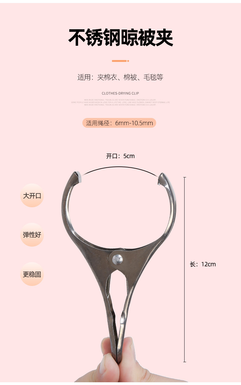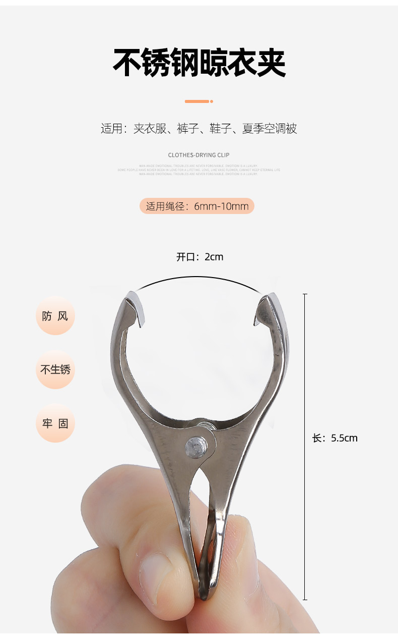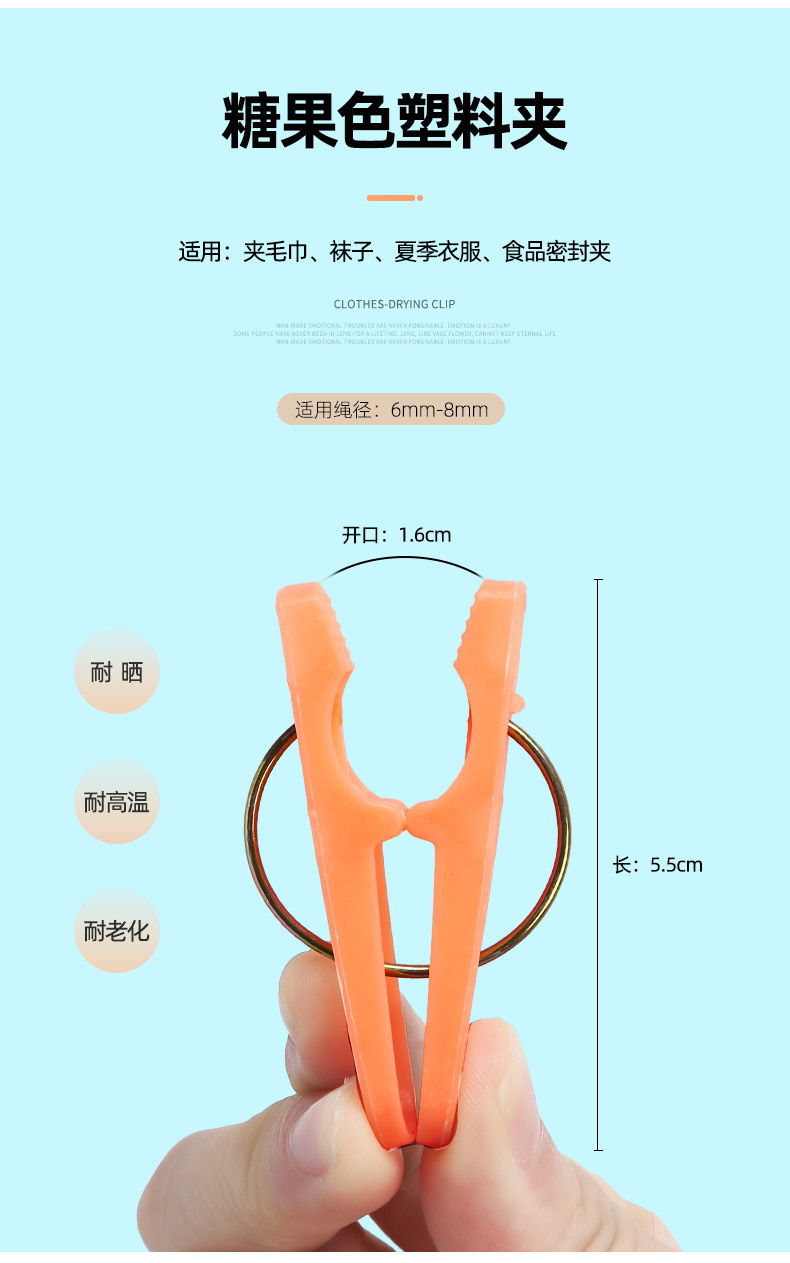 艾逊订货号:K1024771 原始型号:晾衣夹晒被夹不锈钢防滑家用大号衣扣晾晒固定防风宿舍挂衣服夹 5.5cm糖果色晾衣夹/20个装 品牌:AL-NASR/阿尔纳斯 品牌所属地:中国
