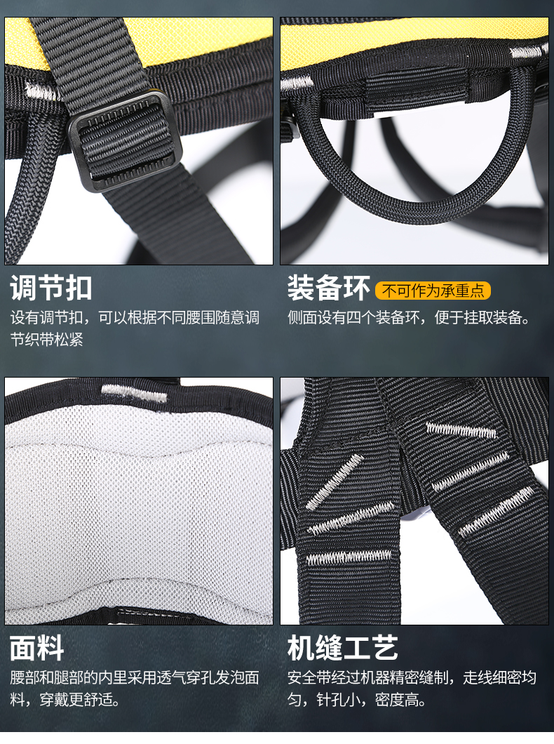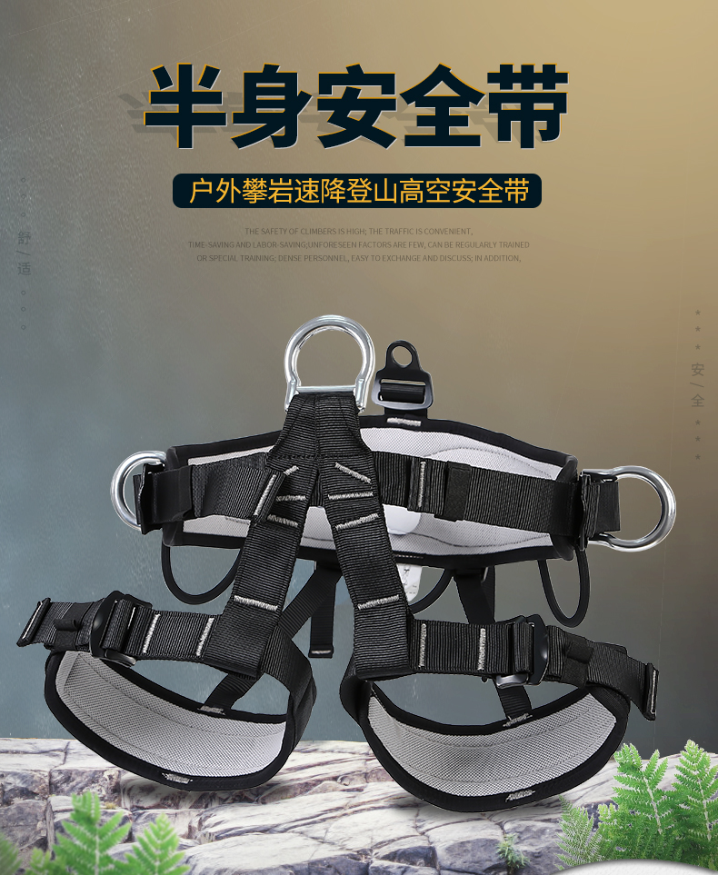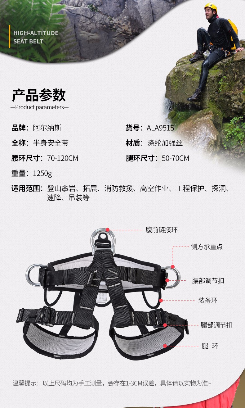 AL-NASR/阿尔纳斯的安全带阿尔纳斯户外救援高空作业安全带登山绳速降半身安全带攀岩保险带腹前/腰间共三个铝钩