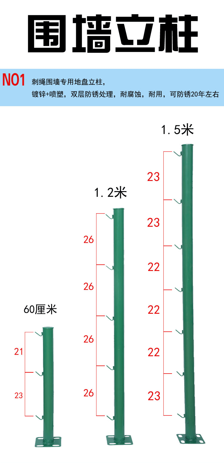 Matsuki玛塔思 刀片刺绳支架 热镀锌V型支架防盗刺丝滚笼架刺铁丝防爬安装立柱 圆管立柱150cm |