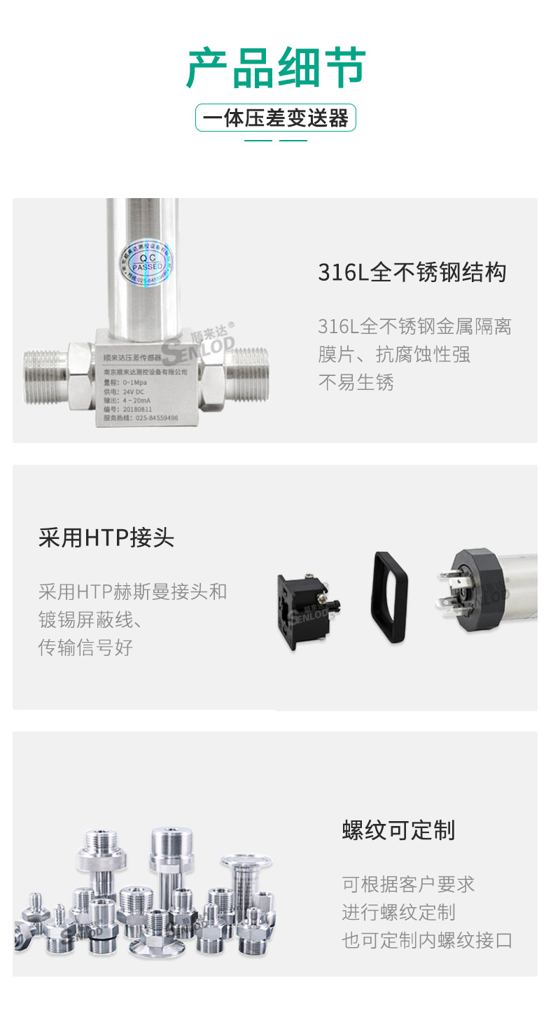 SENLOD/顺来达的差压变送器顺来达一体化差压变送器4-20ma差压传感器压差变送器高精度送风压力48510KPA以上(无显示)