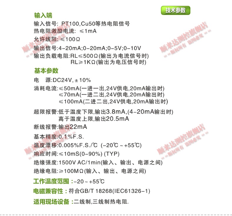 艾逊订货号:E1071950 原始型号:顺来达(SENLOD) 顺来达*高精度热电阻信号隔离器/热电偶温度变送器4-20ma全隔离 品牌:SENLOD/顺来达 品牌所属地:中国