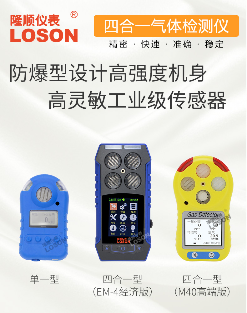 LOSON/隆顺的多种气体检测仪隆顺四合一气体检测仪一氧化碳\/可燃气硫化氢报警器氧气EM-4有毒气体