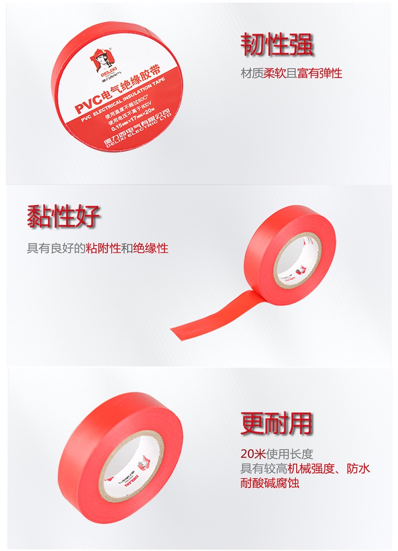 DELIXI/德力西的电工胶带德力西电气电胶布绝缘防水胶带电工胶布电工配件防触电PVC电气胶带10m20米黑色加粘型