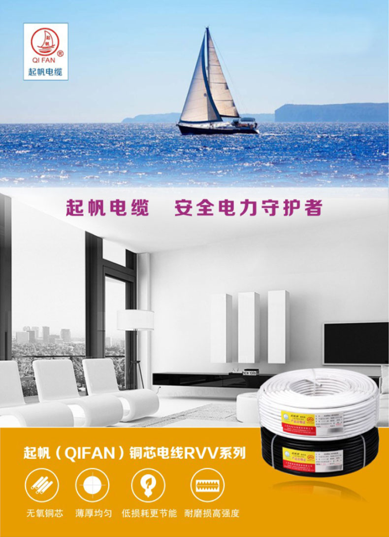 起帆的低压交联电缆起帆(QIFAN)电线电缆ZC-RVV-300/500V3*4阻燃型铜芯聚氯乙烯绝缘护套软电缆(100米/卷)