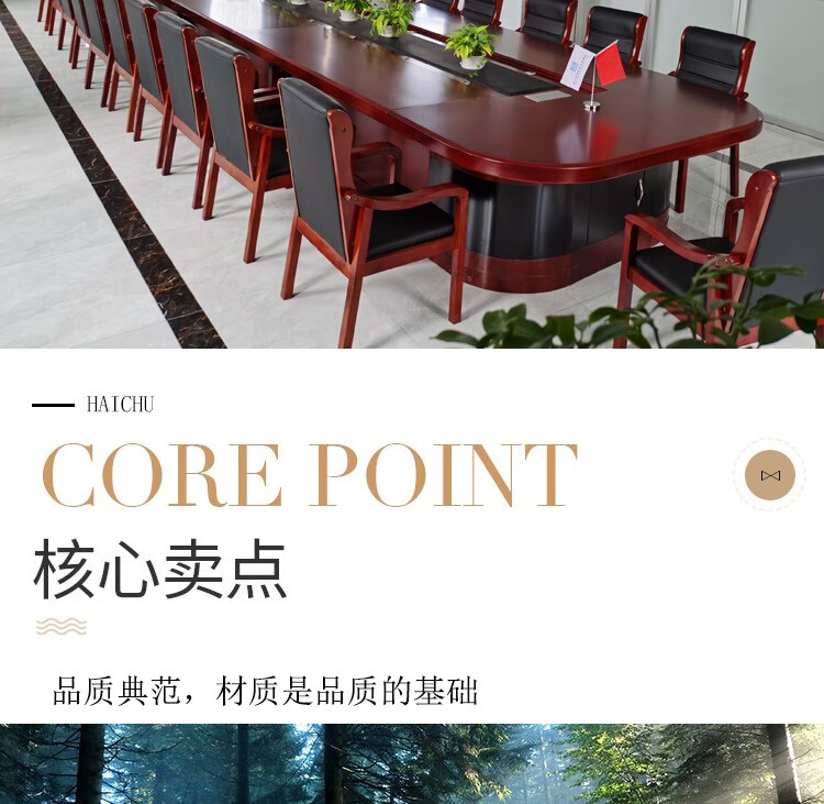 洛来宝油漆会议桌实木贴皮大长桌简约加厚板式大型会议桌椅组合350*150*75cm含12把椅子 |