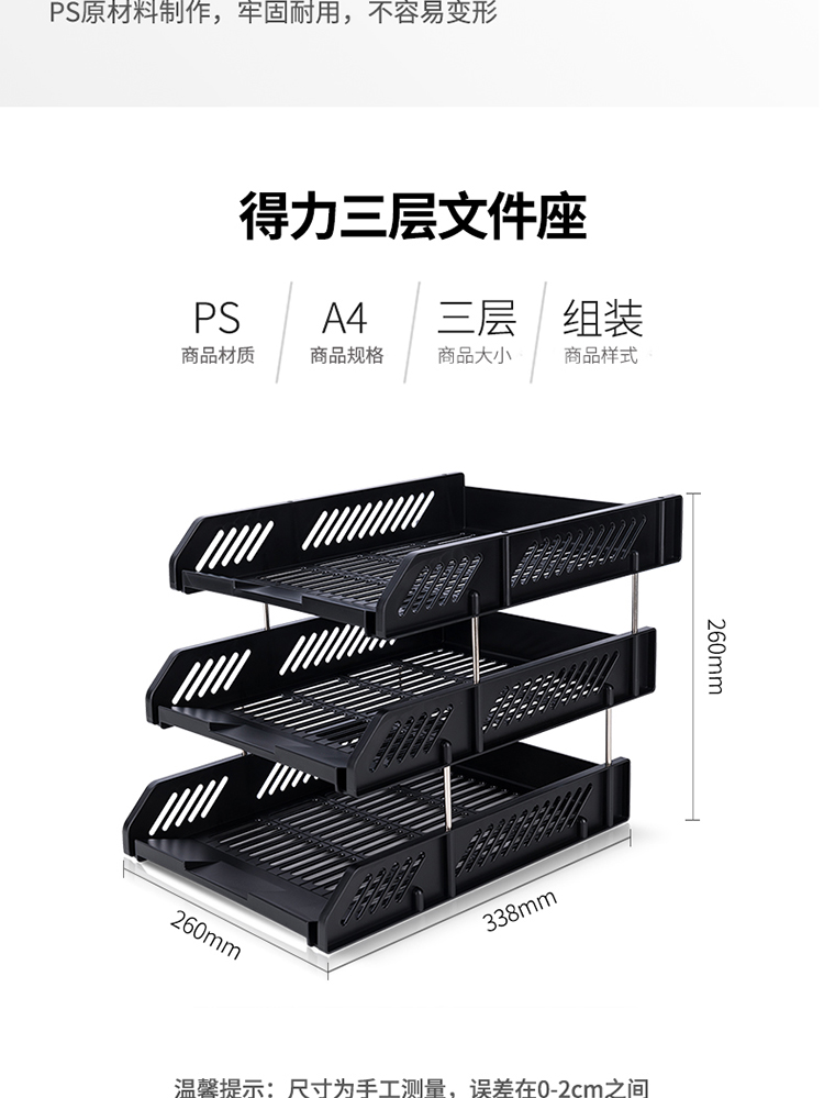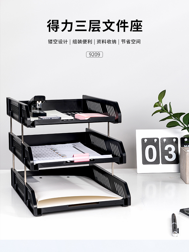 得力(deli)三层镂空收纳文件座自由拆卸组装三层文件盘/文件框 资料收纳桌面文件管理 蓝色9209 |