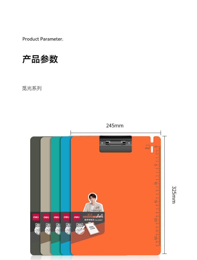 deli/得力的办公文具得力(deli)因为遇见你悬停单板夹强力夹具办公会议文件资料整理夹64857橙色