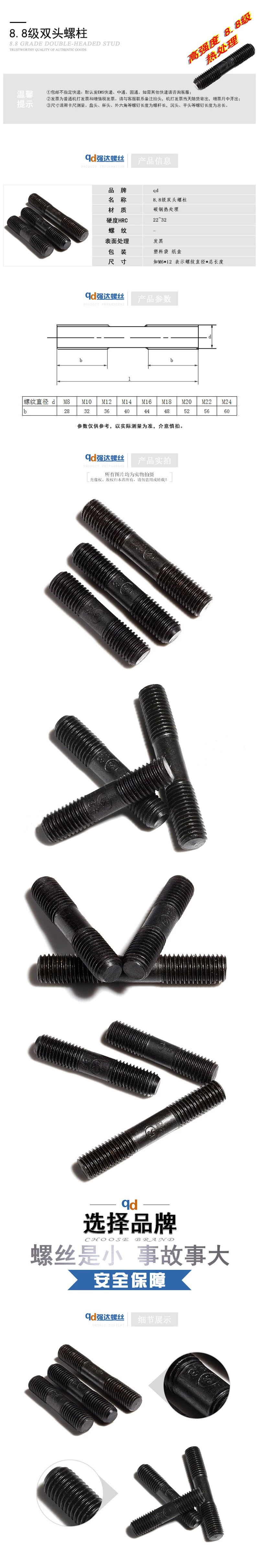 强达螺丝 的双头螺柱强达螺丝GB901等长双头螺柱碳钢8.8级Q含双垫片、双螺母 M12×80