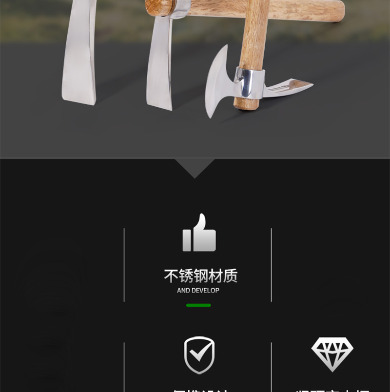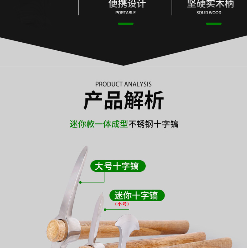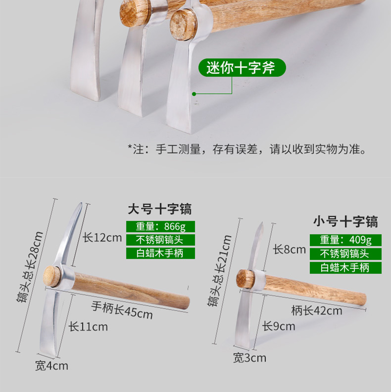 LONGDAI/龙代的敲击工具龙代不锈钢十字镐户外野营登山镐冰镐农具挖树根羊镐