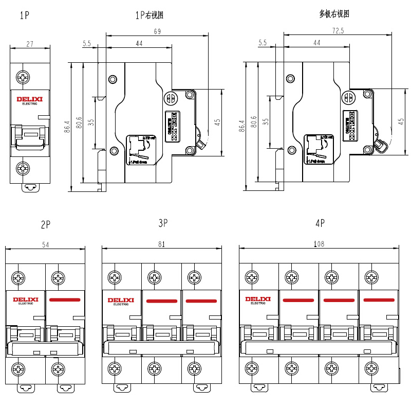 德力西DELIXI 微型断路器 DZ47-125 4P 80A C型 DZ471254C80 |