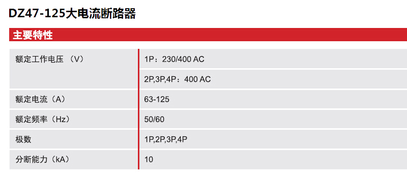 德力西DELIXI 微型断路器 DZ47-125 1P 125A C型 DZ471251C125 |
