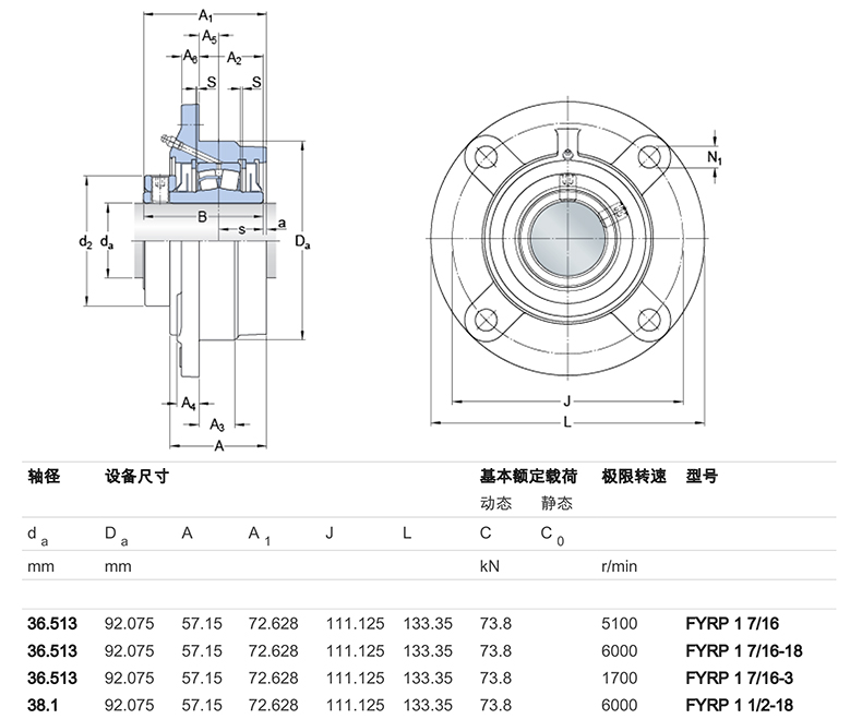 斯凯孚SKF 滚子轴承单元,驶向型法兰,英制轴,FYRP 3 7/16 |