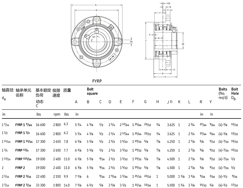 斯凯孚SKF 滚子轴承驶向型法兰单元,英制轴,FYRP 1.1/2 H-3 |