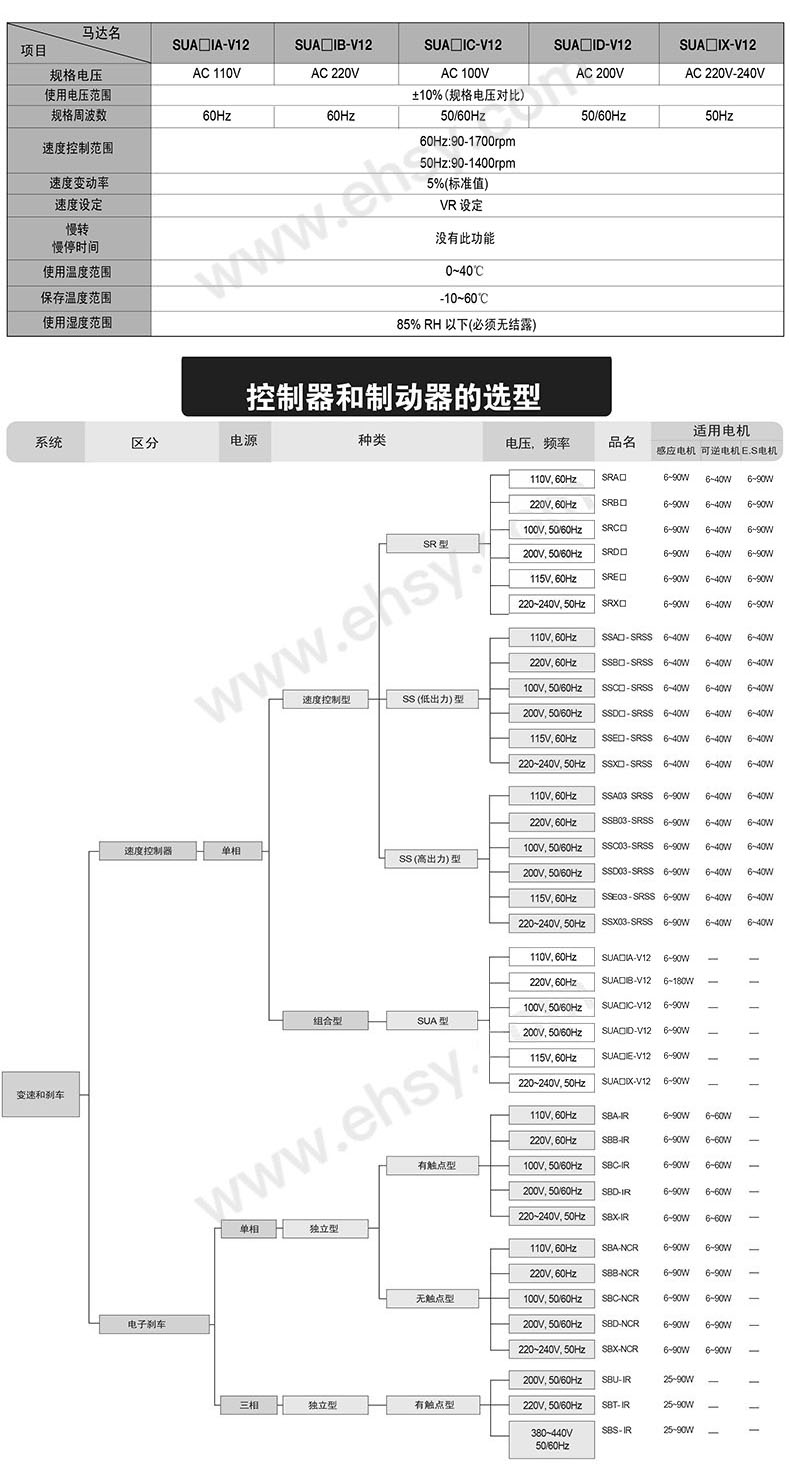 SPG 调速器,组合型,模拟型,单相 110V 60Hz,SUA90IA-V12 |
