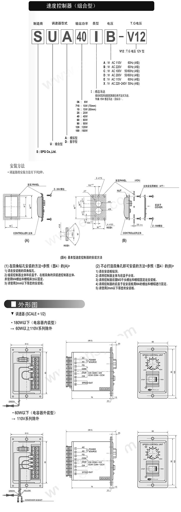 SPG 调速器,组合型,模拟型,单相 100V 50Hz,SUA60IC-V12 |
