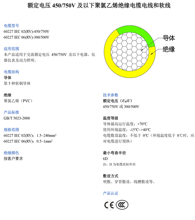 起帆 单芯铜芯软电线,RV-1*2.5mm²蓝色,100米/卷 |