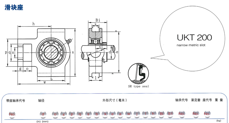 福山轴承FSB 带滑块座轴承,UKT208,圆锥孔型 |