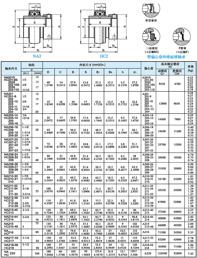 东莞TR的带座轴承芯TR带偏心套外球面球轴承,NA209