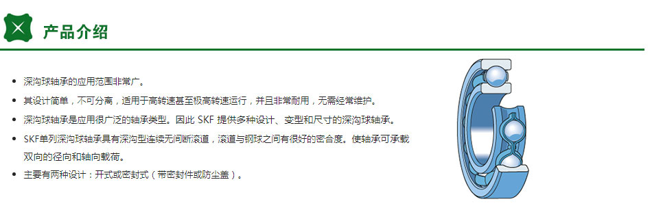 斯凯孚SKF 深沟球轴承,单列,两侧带防尘铁盖型,6203-2Z |