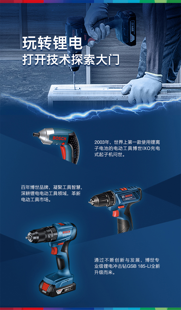 艾逊订货号:D1042454 原始型号:电钻(带1套钻头)博世GSB180-LI/4.0两电一充,含万向轴、4mm6mm8mm混凝土钻头、套筒、螺丝刀 品牌:BOSCH/博世 品牌所属地:中国