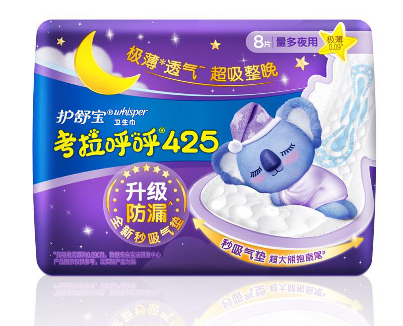 · 护舒宝(Whisper)超薄夜用 考拉呼呼卫生巾 425mm 8片 (极薄) 夜用卫生巾(2包)